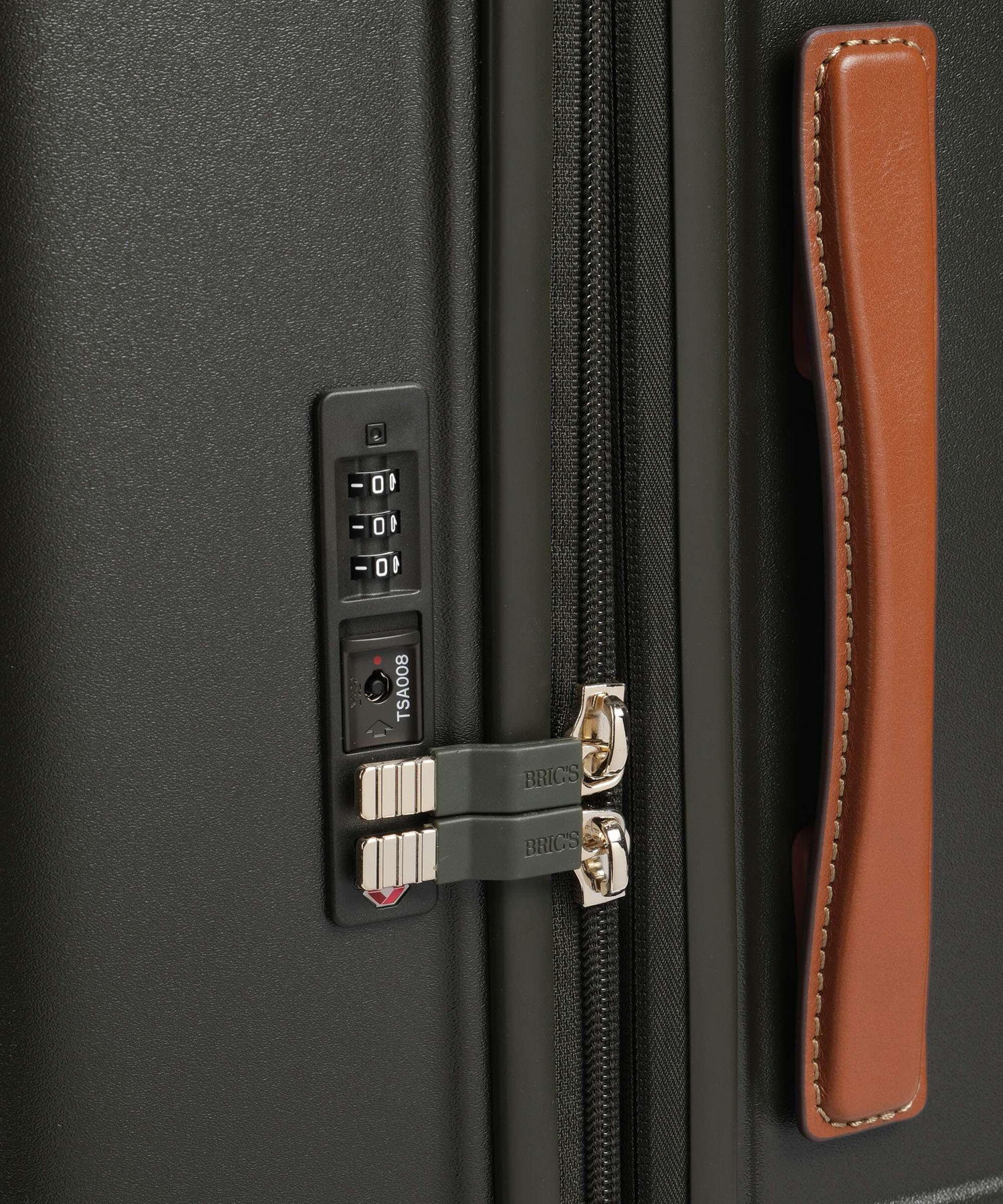 DETAILS: Bric’s distinctive real leather accents trim the outside of the Bellagio trolley, complemented by refined logo details. The leather address tag carrier is an essential finishing touch. Transparent cover included.