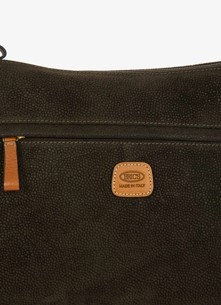Large shoulder bag from the Life collection, in suede-effect synthetic material with genuine leather details.