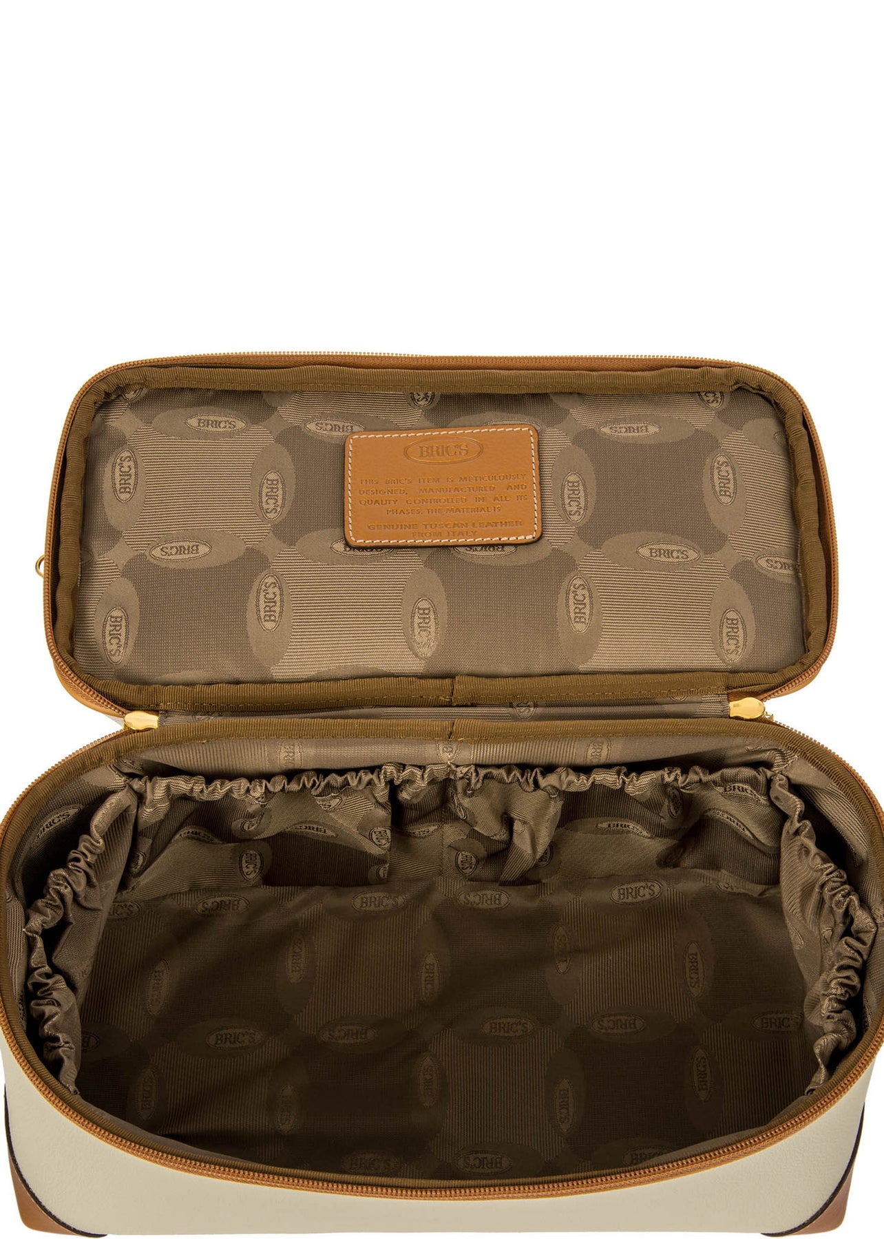 toiletry carry-on from Bric's Firenze collection, made in soft, embossed synthetic material. The iconic design is completed by the fine, vegetable tanned, Tuscan leather finishes. Choose this elegant accessory for taking all your make-up and personal items with you.
