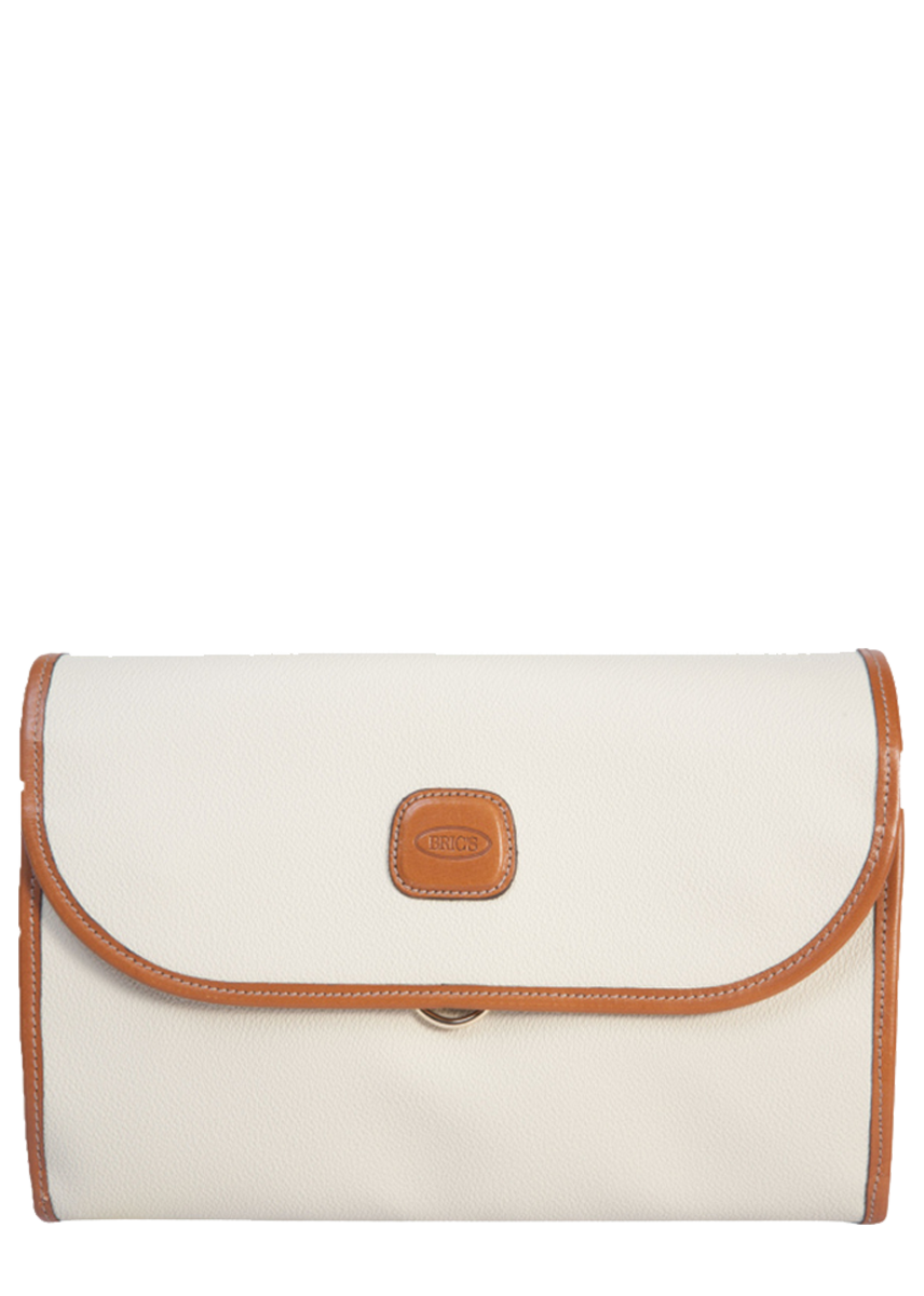 tri-fold toiletry bag from Bric's Firenze collection, made in soft, embossed synthetic material. The iconic and elegant design is completed by the fine, vegetable tanned, Tuscan leather finishes. Spacious and elegant, it has been made to hold all the essentials needed for every trip.