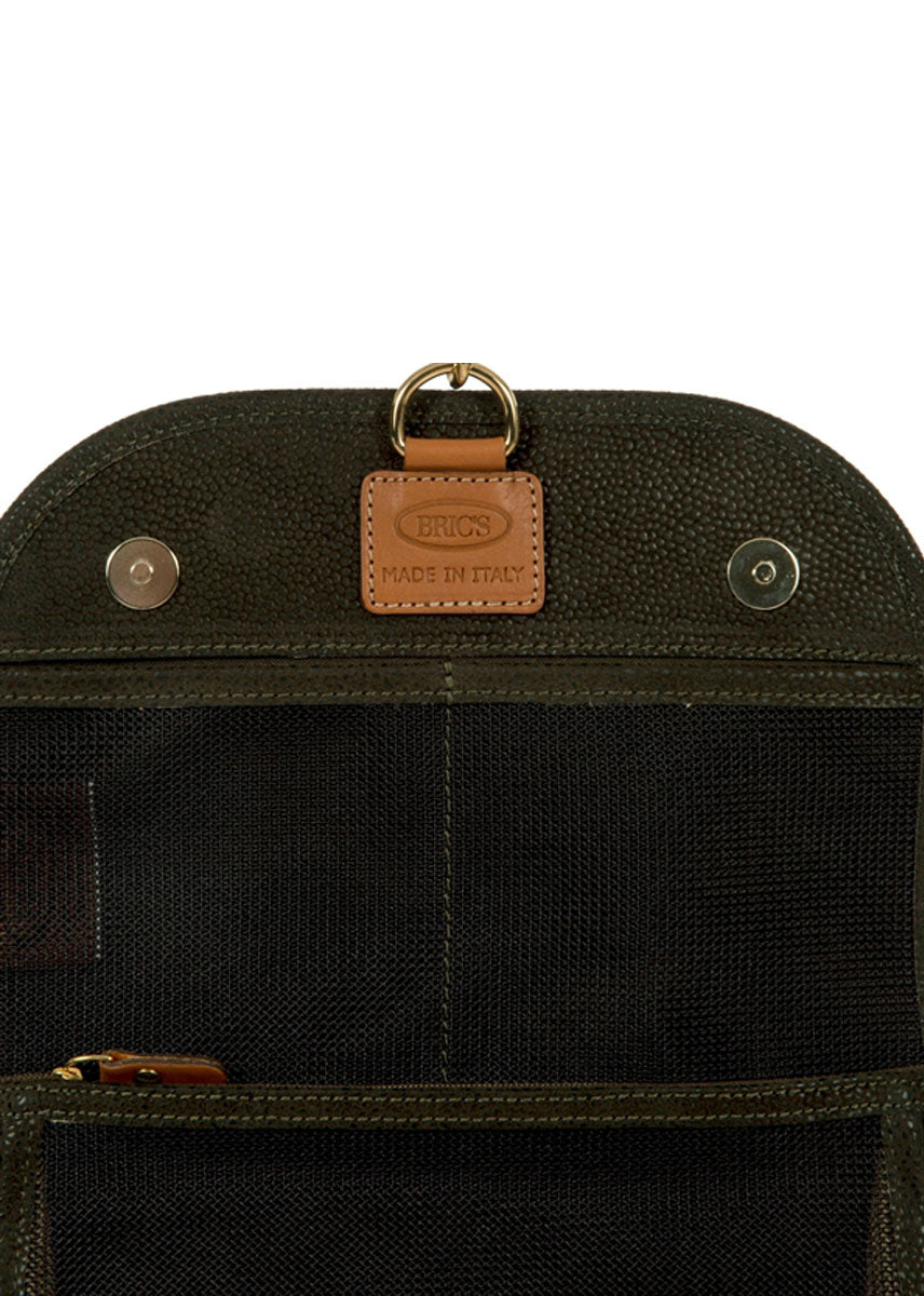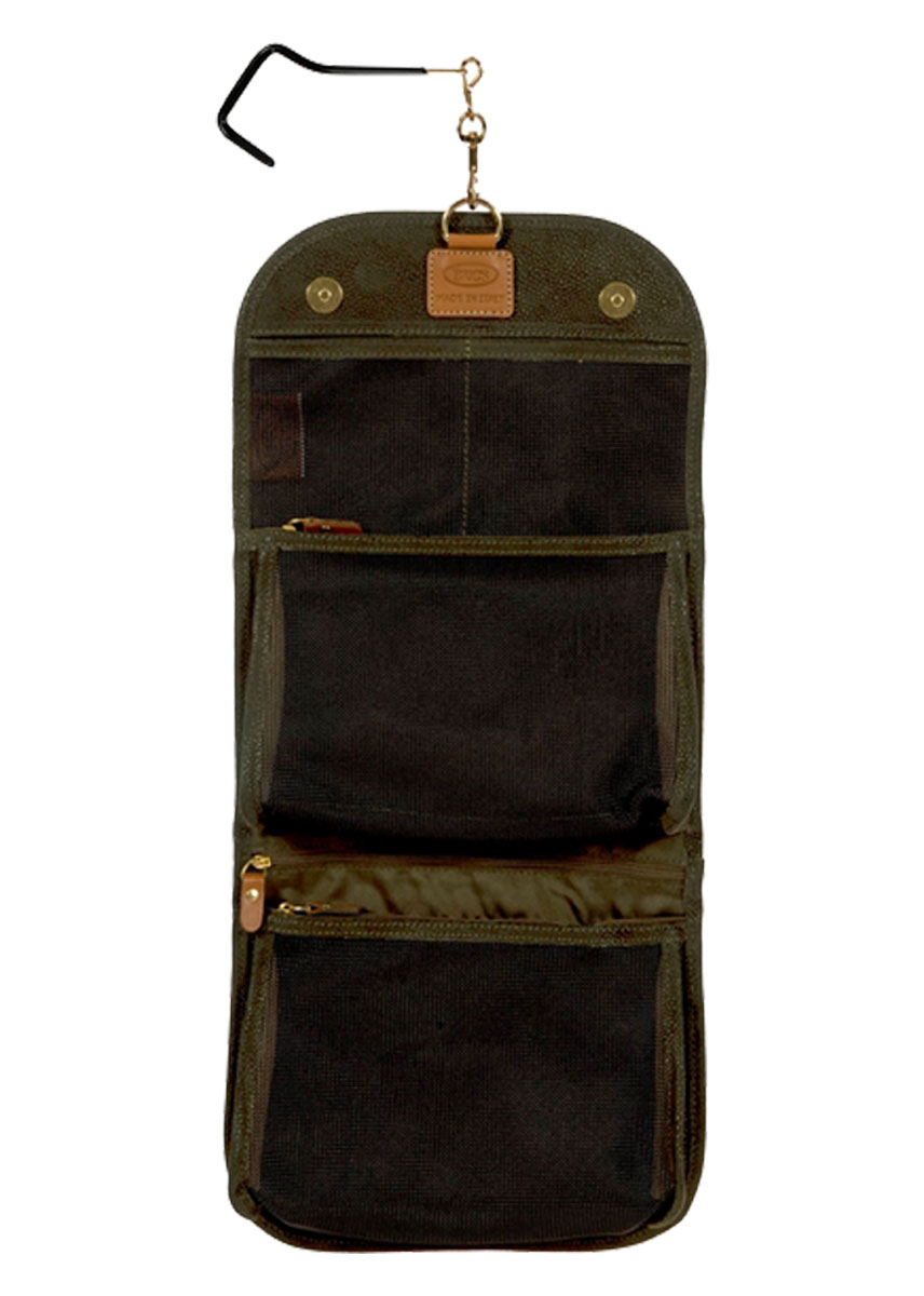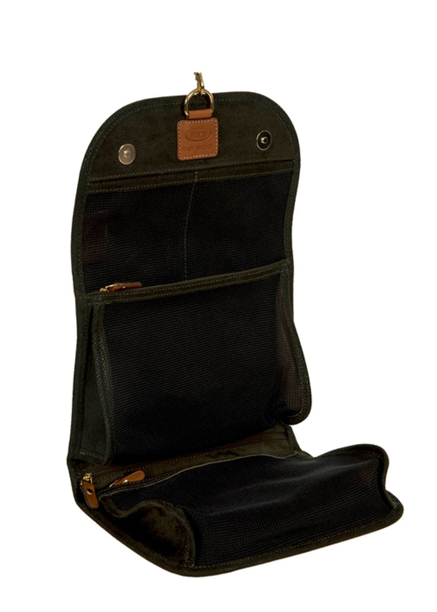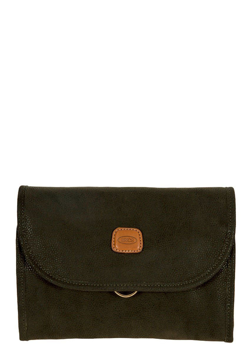 Toiletry bag from Bric's LIFE collection, made in durable synthetic material that is a pleasure to touch, thanks to its suede effect surface. Spacious and elegant, with vegetable tanned Tuscan leather finishes, it has been made to hold all the essentials needed for every trip.