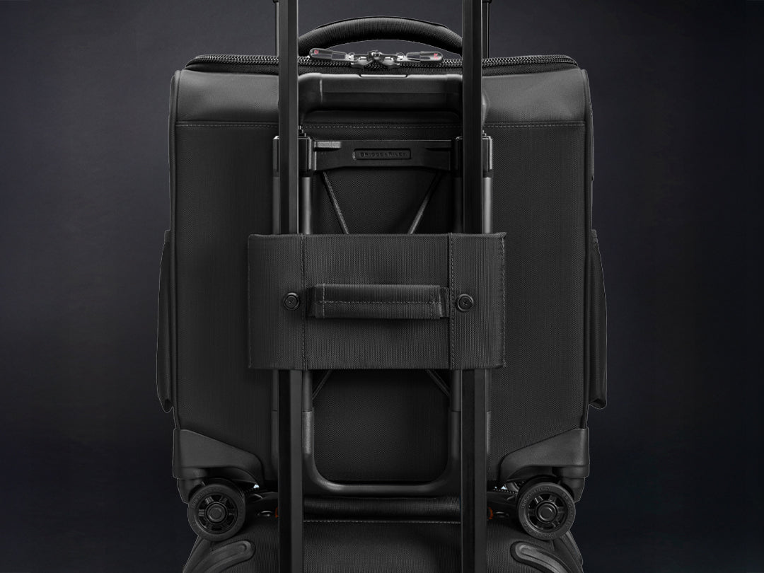 Transport two bags as one for comfortable transit in the airport or anywhere else with our interlocking handle system. Simply stack on any compatible Briggs & Riley luggage, then turn and lock for a secure hold.
